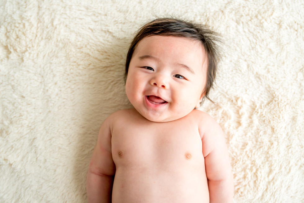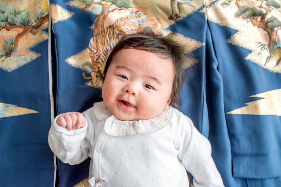 三ヶ月の男の子の赤ちゃんはまずまずご機嫌で、気持ちよく写真を撮らせてくれる。
