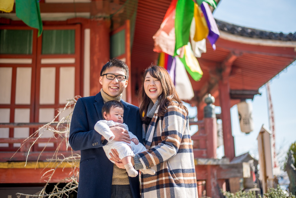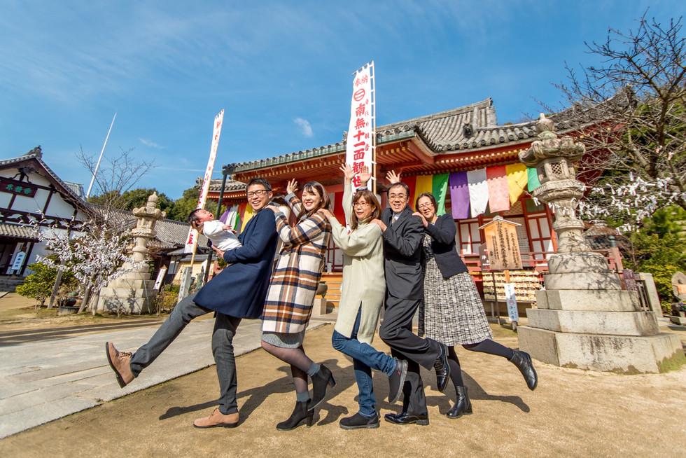 曇りの予報だったのに、スタジオで赤ちゃんを撮影しているうちに陽が射し始め、祈祷を終えたお寺の上には青空が広がる。