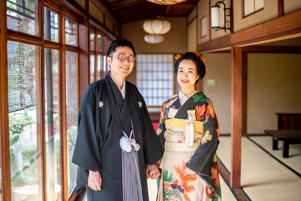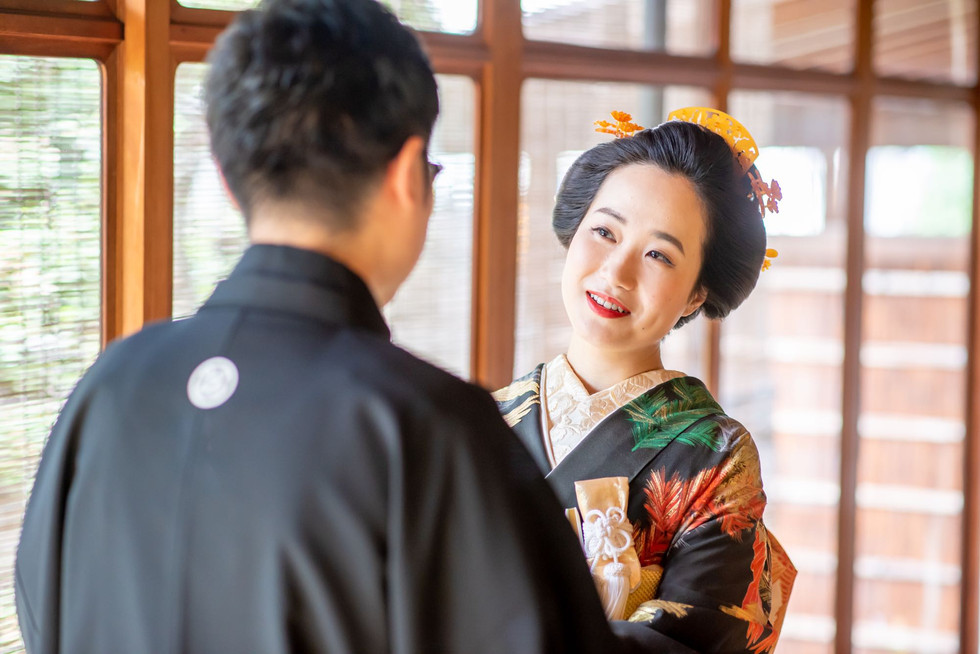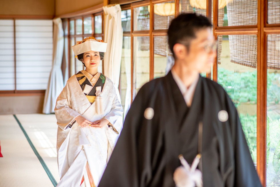 昔ながらの結婚写真がキマりすぎ今カメラ目線しなくていい。。角隠しと、たぶん新郎のメガネのせい。