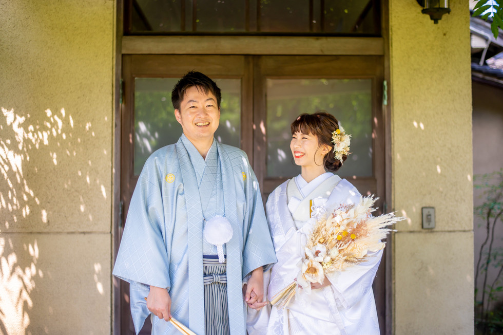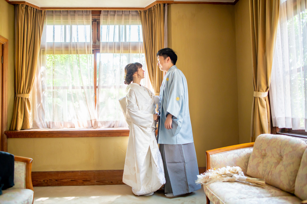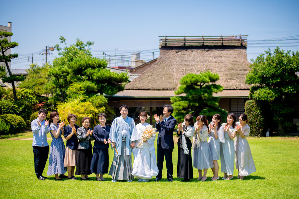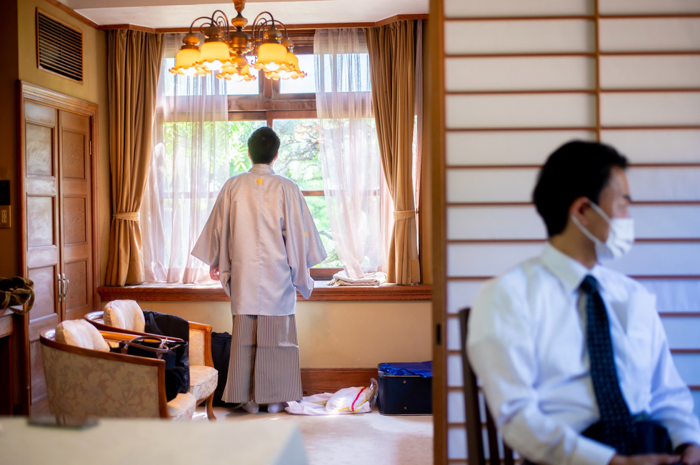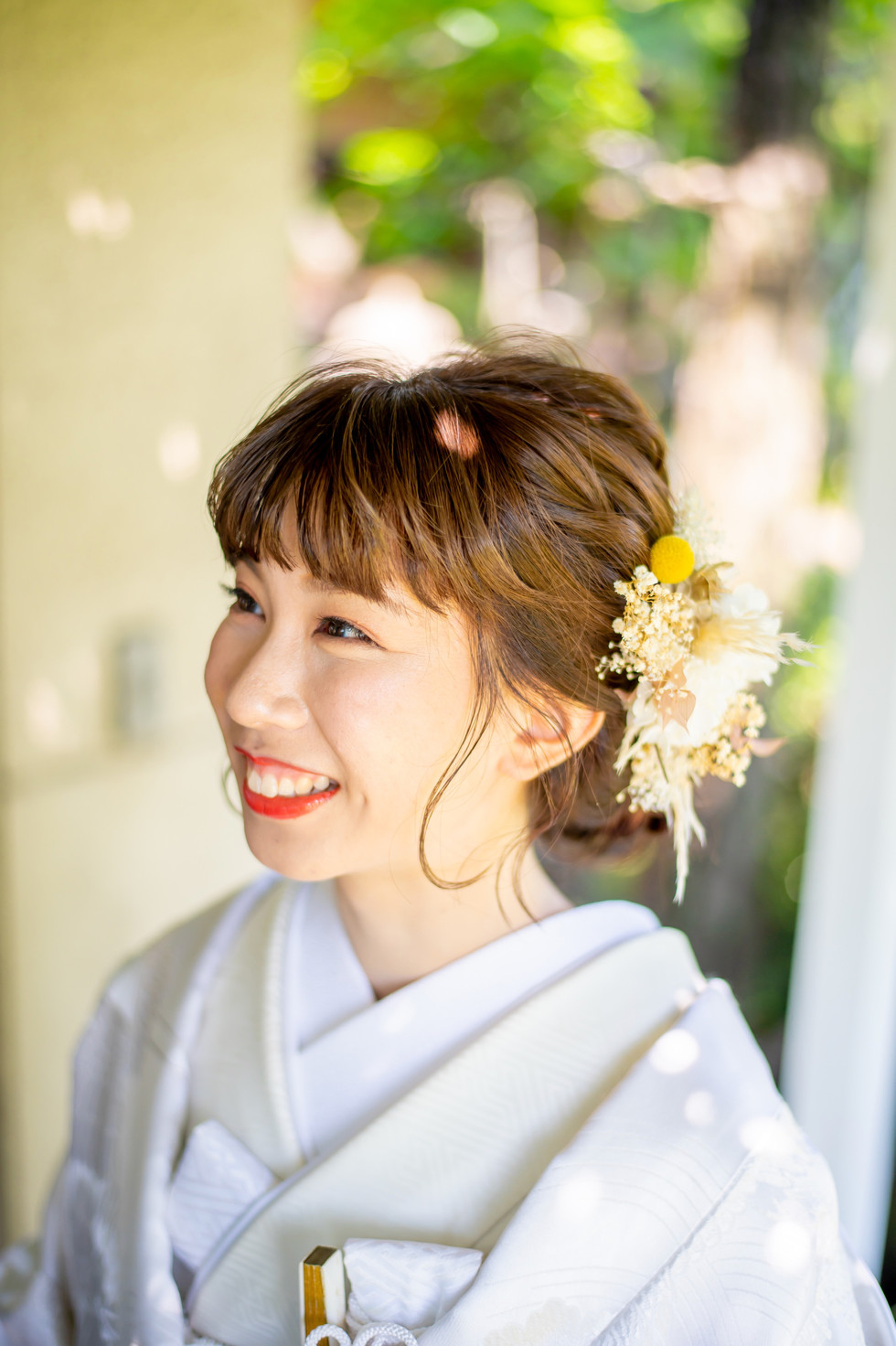 白無垢を着る彼女は、晴れ姿を見てもらいたくて友人たちを呼んでいる。