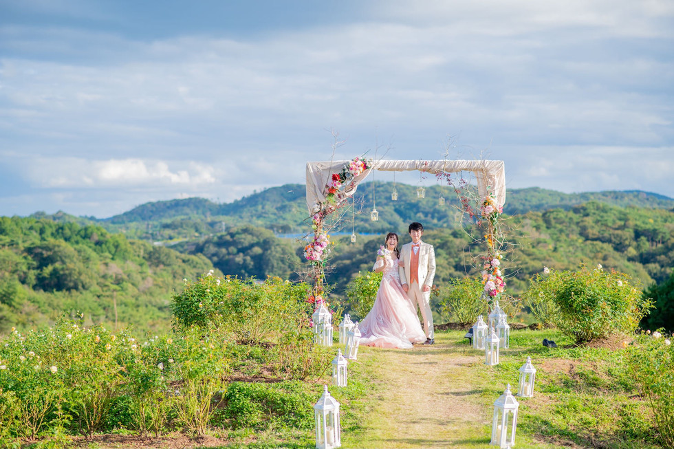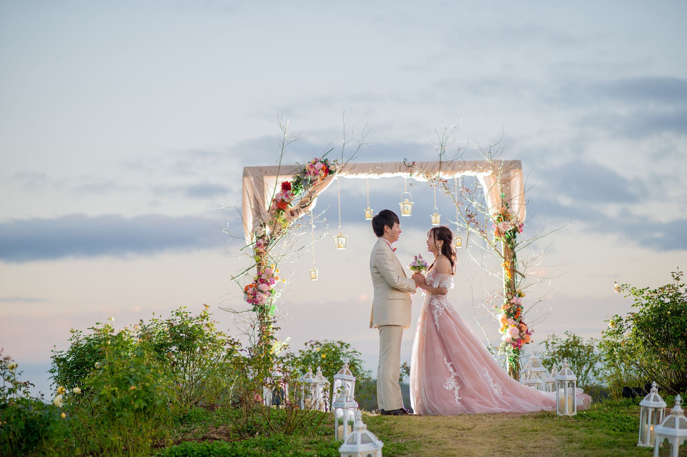 ランタンの灯りライトアップされた写真を撮りたいと言っていた新婦だったが「もういいかな」と寒さにギブアップして撮影終了。念のために使い捨てカイロを持っていってよかった。ドレスの背中に入れておくだけでも体感が違うものです。